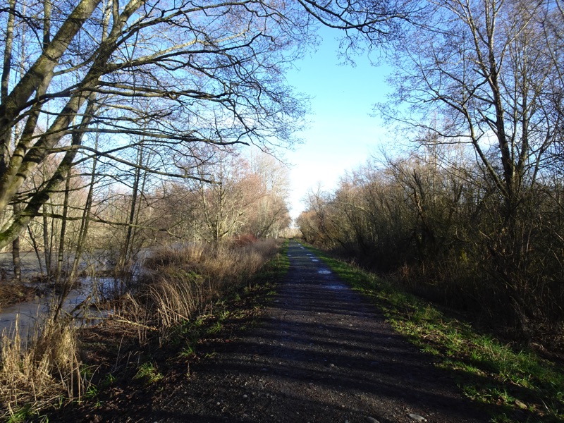 On our last visit to the Dungeness Dike, the river was full of brown, milky water, lots of it. The water was high and quickly flowing. The trail was still wet, but the sun was out. It's rain season, so we expect the river to rise and fall for a while, then rise again for the spring melt.