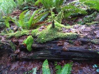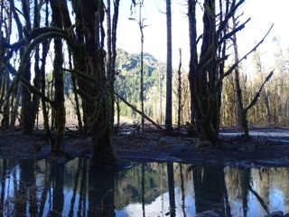 We headed on through the forest detour. We could see the river below, and we could see that the logs and snags of summer had been caught up in the increased flow. We didn't see a sign of the collapsing pavilion at the old Elwha campground.