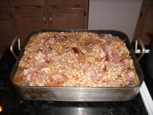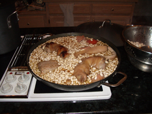 | • 4 pounds dry white beans | This is a lot of white beans. We tend to use those little Great Northern beans, and they start small but they grow. Our cookbook has a warning never to triple the recipe. We did once and had enough cassoulet for 50 people. |