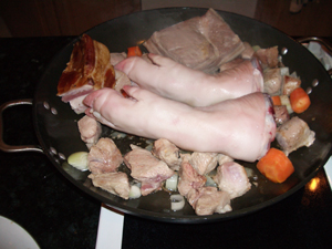 | • 4 pounds fresh ham hock or pigs' knuckles | You really want fresh, not smoked hocks or knuckles. These joints have lots of gelatin as well as savory meat. |
