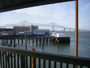 Astoria is an old cannery town near the mouth of the Columbia River. It peaked some time ago. The canneries are mostly closed, but there is a quaint waterfront and some good restaurants. We liked Gunderson's Cannery Cafe which is on a pier by the river. The flank steak salad, a special that day, was excellent, and the shrimp sandwich, with little pink shrimp, was very good. We didn't have much time, or we would have explored more, but what we saw, we liked.