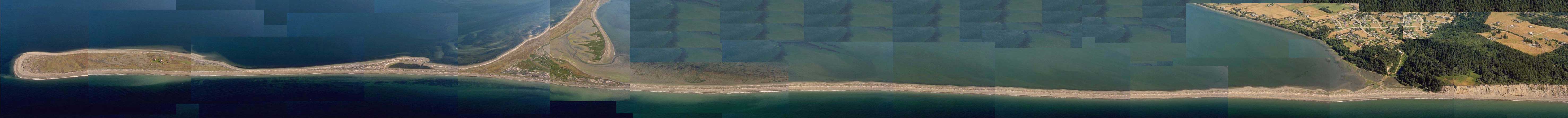 The composite image is 5910 by 448 pixels, and we've filled in a few bits along the edges with background cruft since the original imagery doesn't provide quite all the bits we need. If you'd like to trace a hike along the Dungeness Spit with the original imagery, click here. Click on the image above for a larger view of the composite.