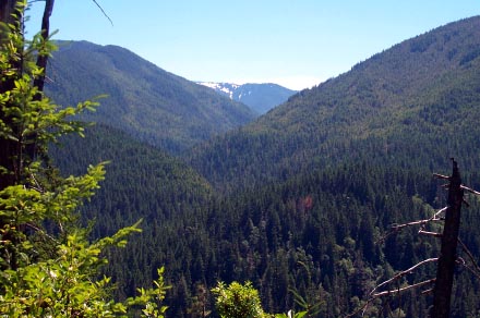 The Elwha River is one of the many rivers that flow from the North Olympic high country to the sea. The river here is not as accessible as at the Hoh or elsewhere, but the hike from Whiskey Bend offers some interesting country and takes you along the valley wall, in and out of waterfall canyons, then down into a mysterious glen near the river crossing. This is an easy hike, but can be long, and requires some climbing.