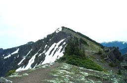 From here, if you can stand it, you can walk down to Heather Park or Lake Angeles and then down to the Heart of the Hills, a descent of nearly 4000', or you can explore the nearby hills. We have been told that one can climb Mount Angeles, to the west, with no special equipment, if you are willing to scramble. We are not willing to scramble, so it would be good idea to check another source before trying this.
