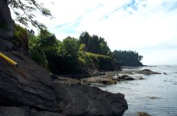 There is a well marked side trail which gets you down into the cove you've been seeing from the main trail. We've gone down a ways, but haven't made it to sea level yet. Alternatively, you can continue onwards towards the advertised "vista point", but we haven't gotten this far either. Despite our failings, this is a really nice trail and can be especially nice on a rainy day with its forest shelter and ocean views.