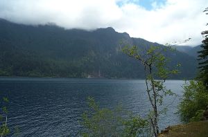 The Spruce Railroad Trail is a monument to the early aviation industry and triumph of the more recent rails to trails movement. This beautiful trail which runs along the north shore of Lake Crescent was once the railroad that brought the light weight spruce wood from the North Olympic Peninsula to Boeing in Seattle, and may have carried the spruce used in Howard Hugh's infamous "spruce goose", the largest wooden airplane ever built. So much for industrial history. The trail is now a relatively flat, easy trail that offers a pleasant forest walk with more or less continuous views of a beautiful lake. As an additional bonus, you can swim in Lake Crescent along the trail, and it is a good trail for bikers, serving as an alternate bicycle route.