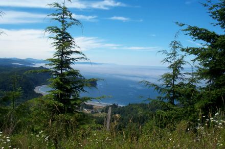 There is a well marked side trail which gets you down into the cove you've been seeing from the main trail. We've gone down a ways, but haven't made it to sea level yet. Alternatively, you can continue onwards towards the advertised "vista point", but we haven't gotten this far either. Despite our failings, this is a really nice trail and can be especially nice on a rainy day with its forest shelter and ocean views.