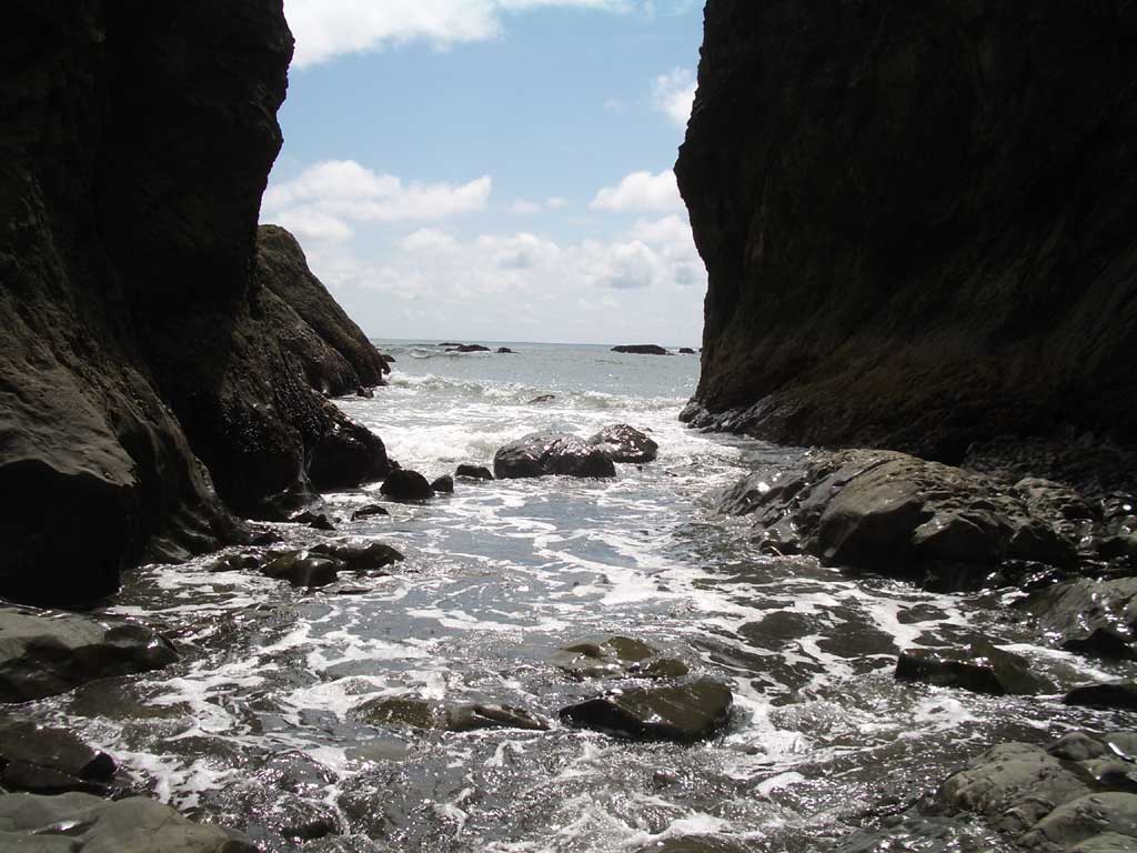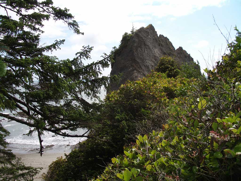 Cape AlavaThis beach is at the end of the world. The drive is long, and then there is the three mile walk through the forest from the Ozette Ranger Station to the sea. After Ahlstrom's Meadow, the trail descends, and then there is the wild, isolated three mile walk among the sea stacks, tide pools, headlands and rocky sand. All that, and the Pacific Ocean. Watch for fawns, eagles and petroglyphs, then return three miles through the forest for a nine mile loop. |