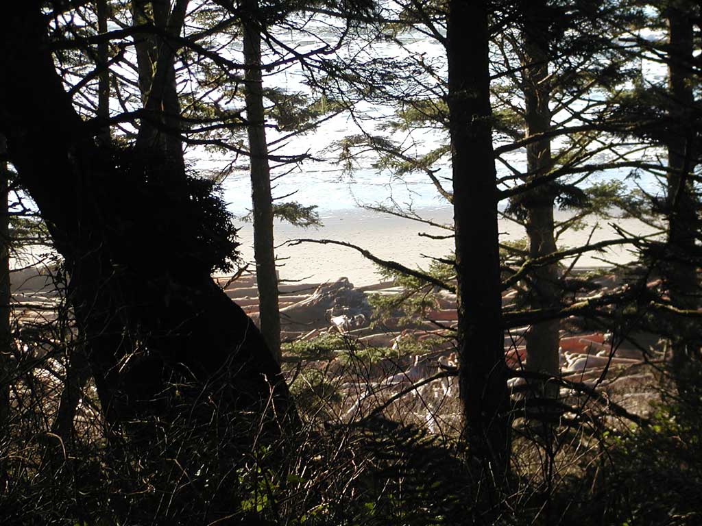 Second BeachThis is one of the prettiest beaches. It starts with a walk through the rain forest and then descends to a driftwood scramble and the beach. At low tide, this beach is broad and sandy. Head south for the tidepools and the sea cave, but mind the tides. You'll see anemones, starfish, and if you watch the tree line, eagles. |