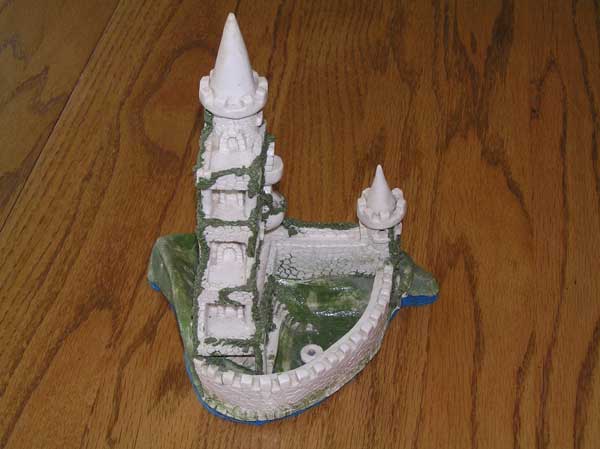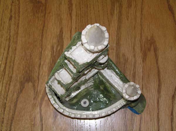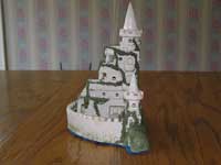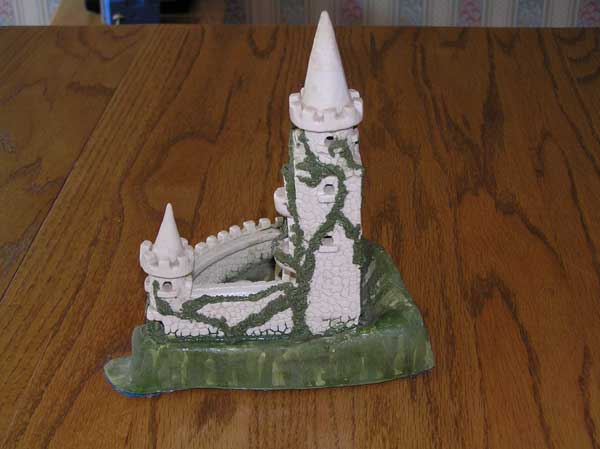 These are two vine covered ceramic castles crafted by Barbara Teufert. We love the way she does the trees and vines. You can really get into her miniature world.